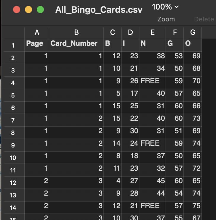 Needed some custom bingo cards.. Found a great solution, made 25 pages from CSV data supplied by chatGPT.